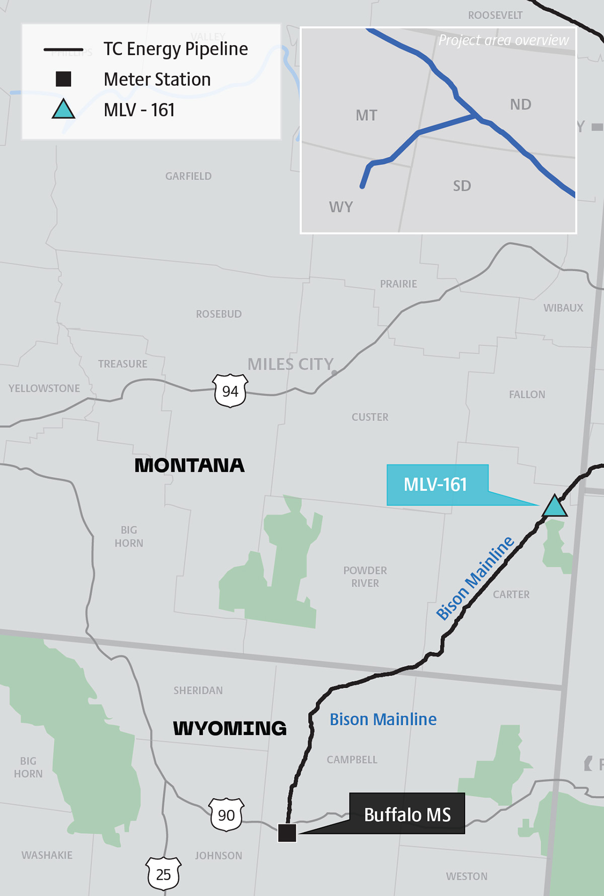 TC Energy’s 1,412-mile (2,272-km) Northern Border Pipeline Company (NBPL) connects natural gas reserves in the Western Canada Sedimentary Basin with consumers in the Midwestern U.S. as well as receives and transports U.S.-produced natural gas. The Bison Pipeline carries part of that natural gas across Wyoming and Montana to North Dakota.